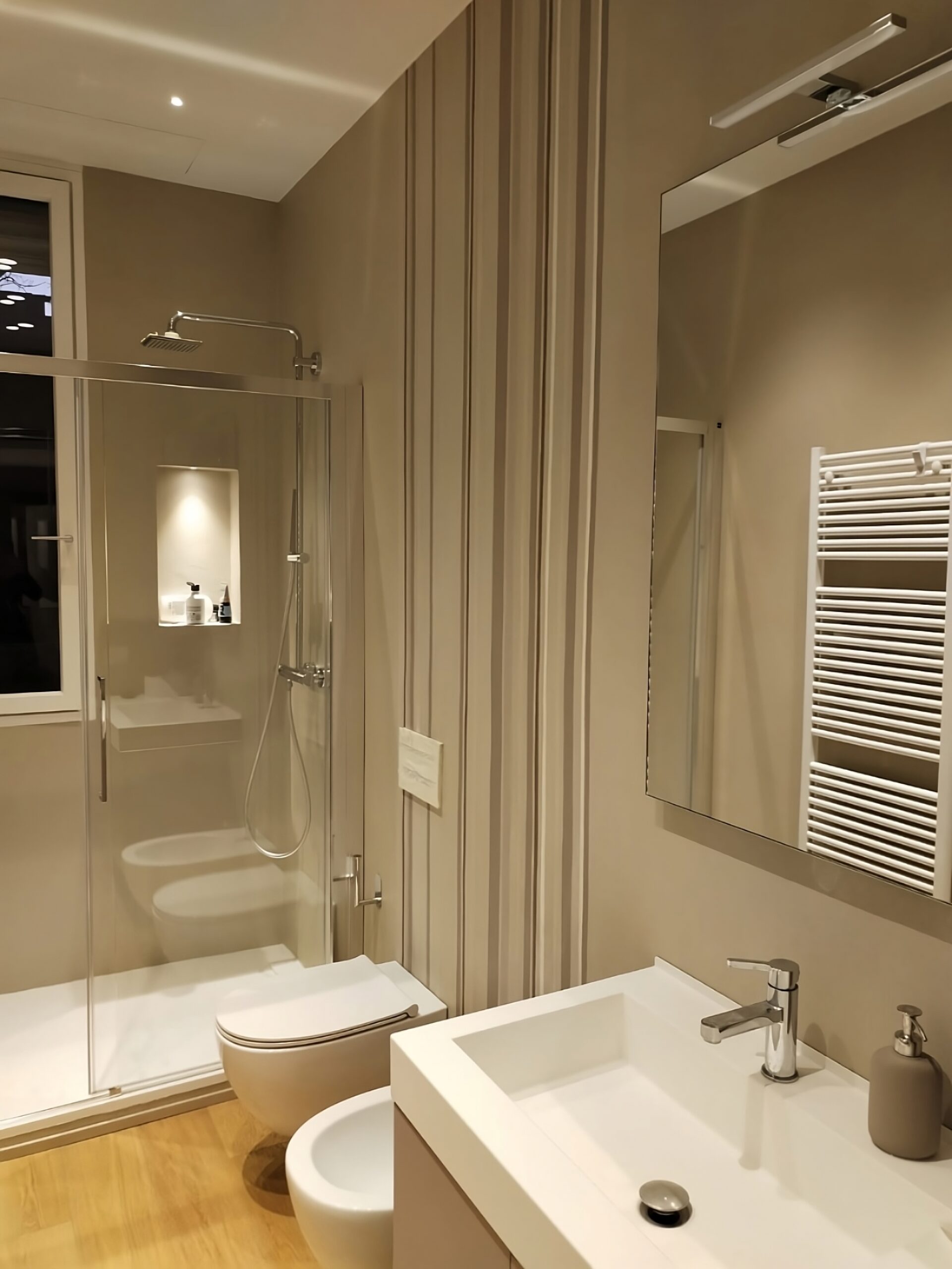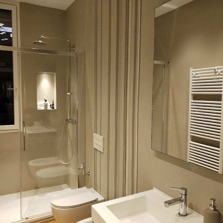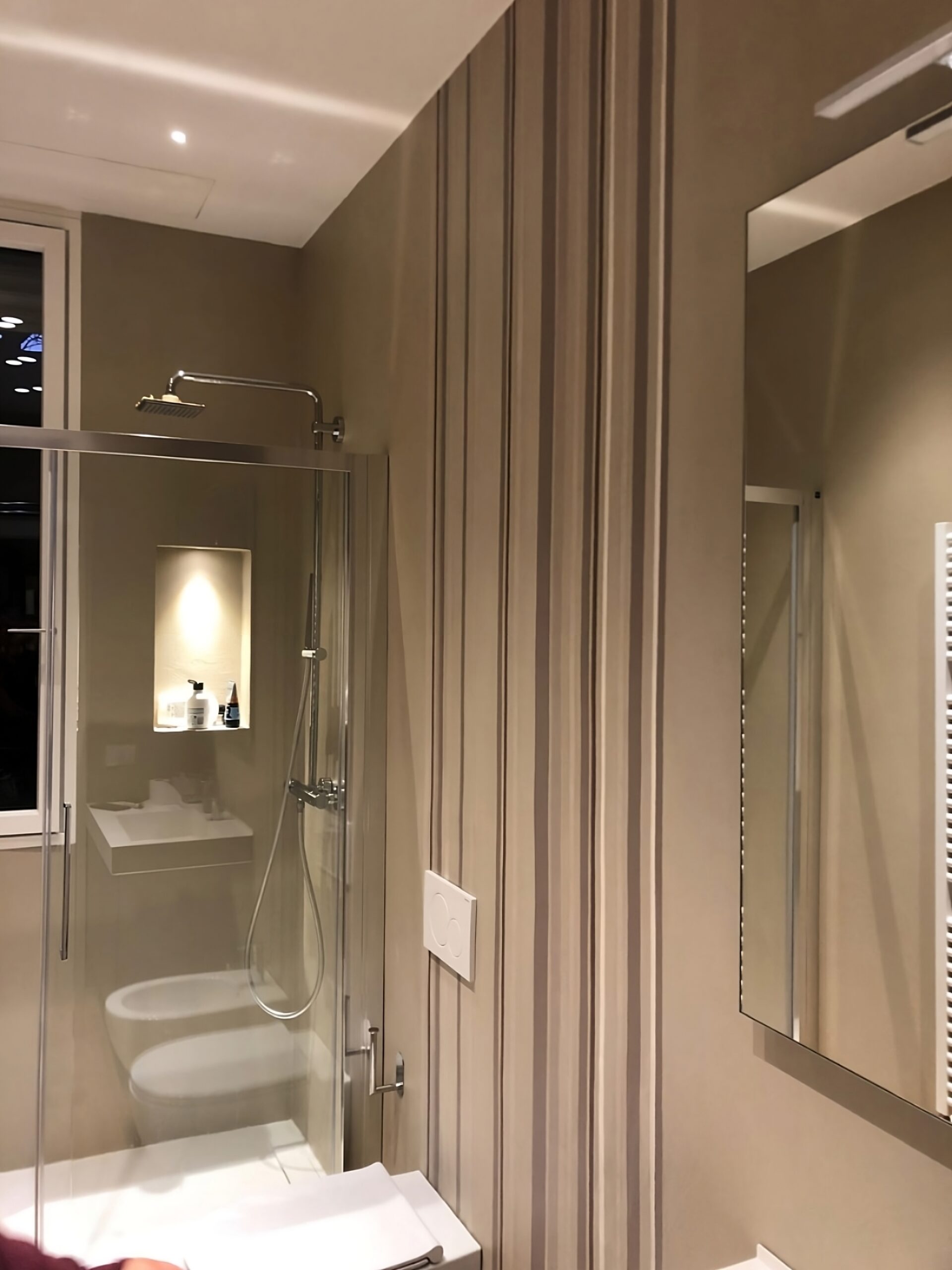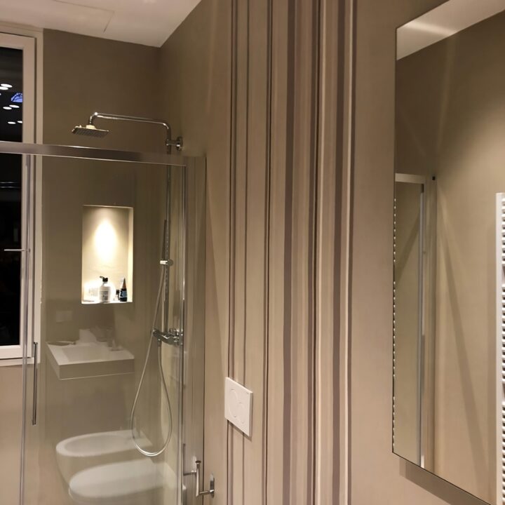 Description Rivestimento Millerighe sfalsate in Microresina Kerakoll effetto parato su Resina Kerakoll Spatolata per Abitazione Privata, Milano