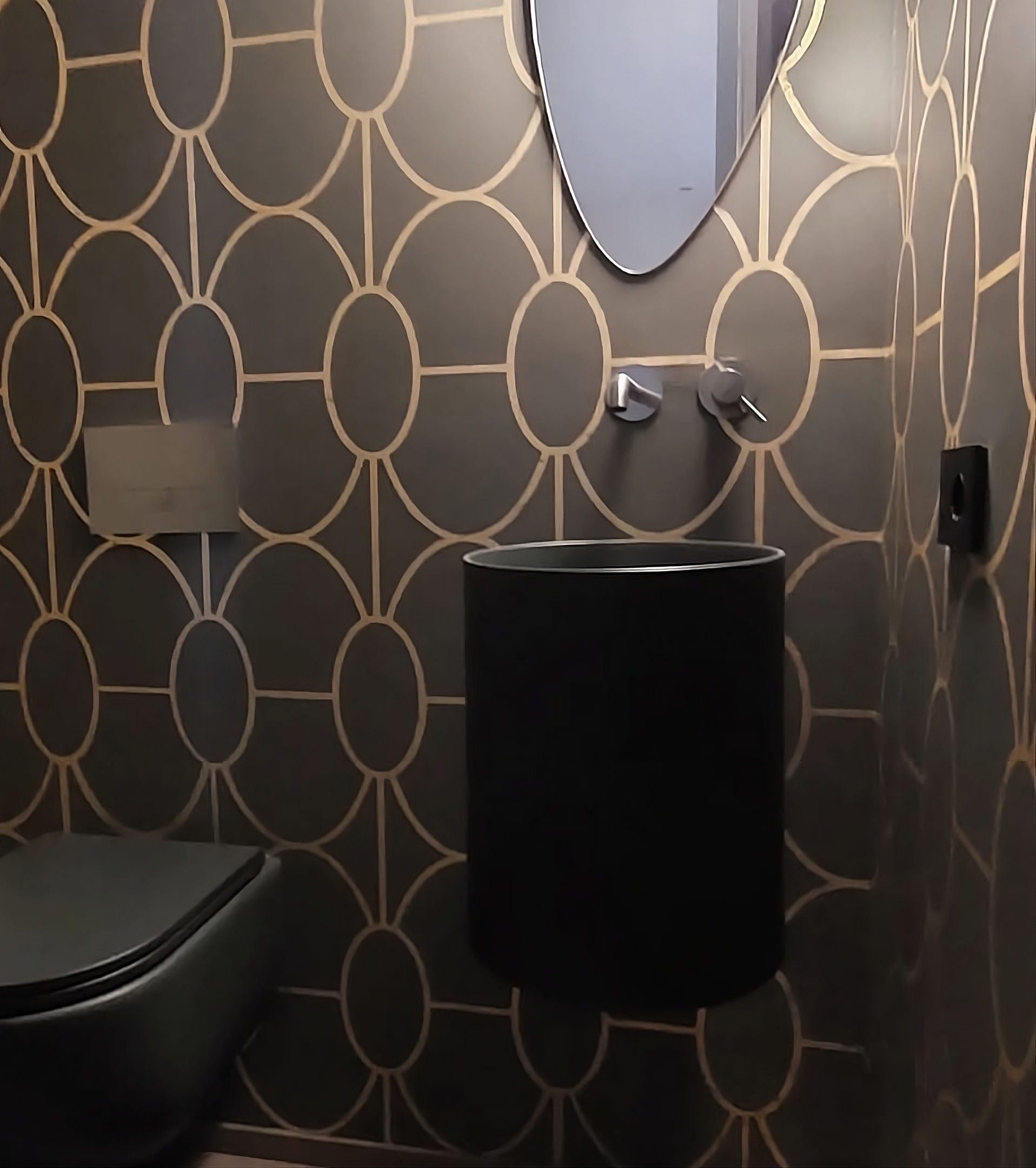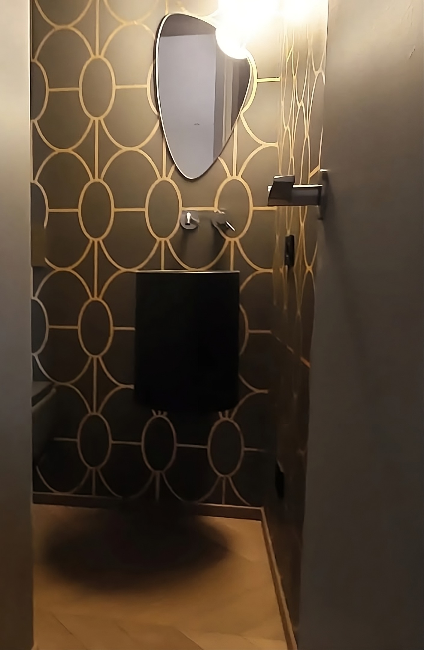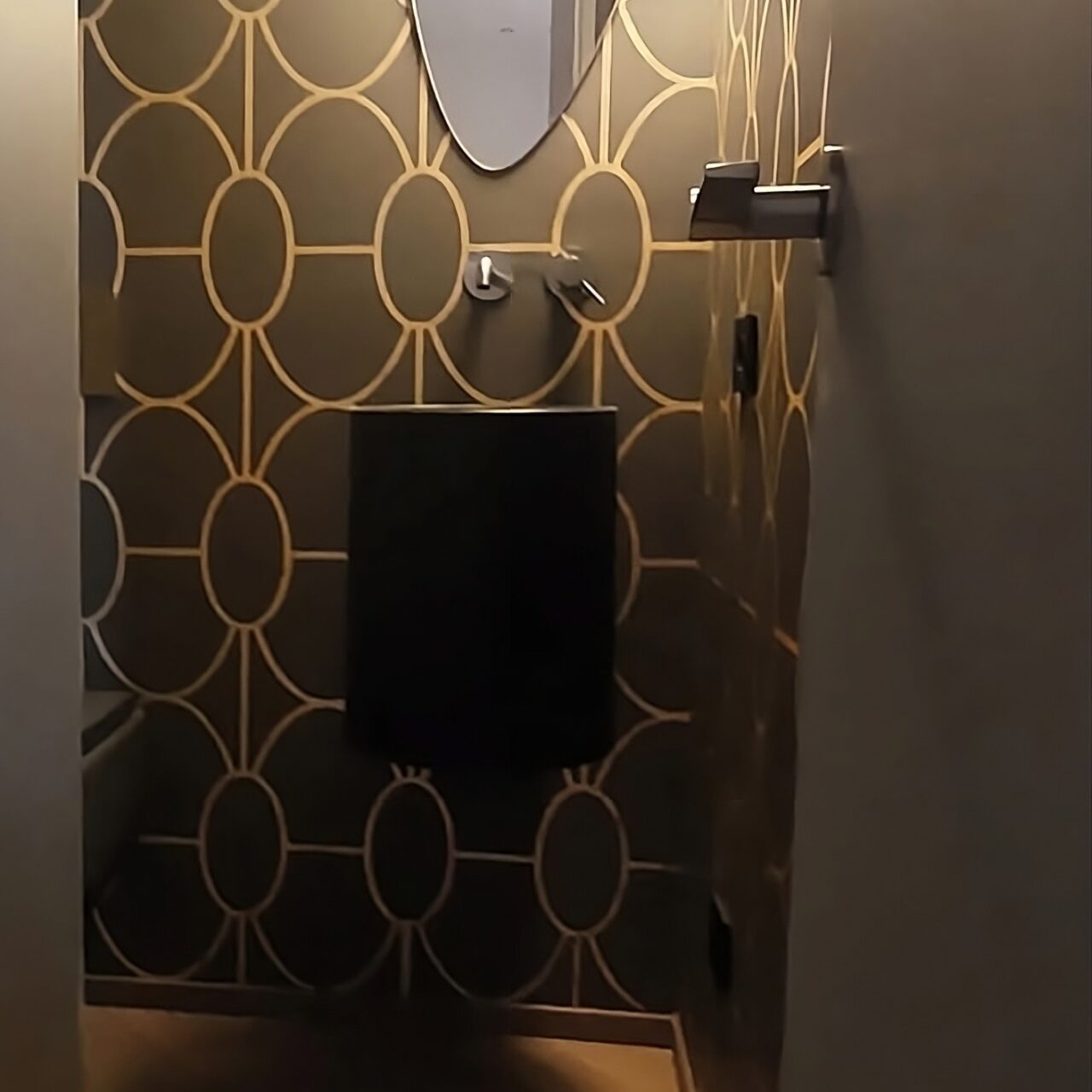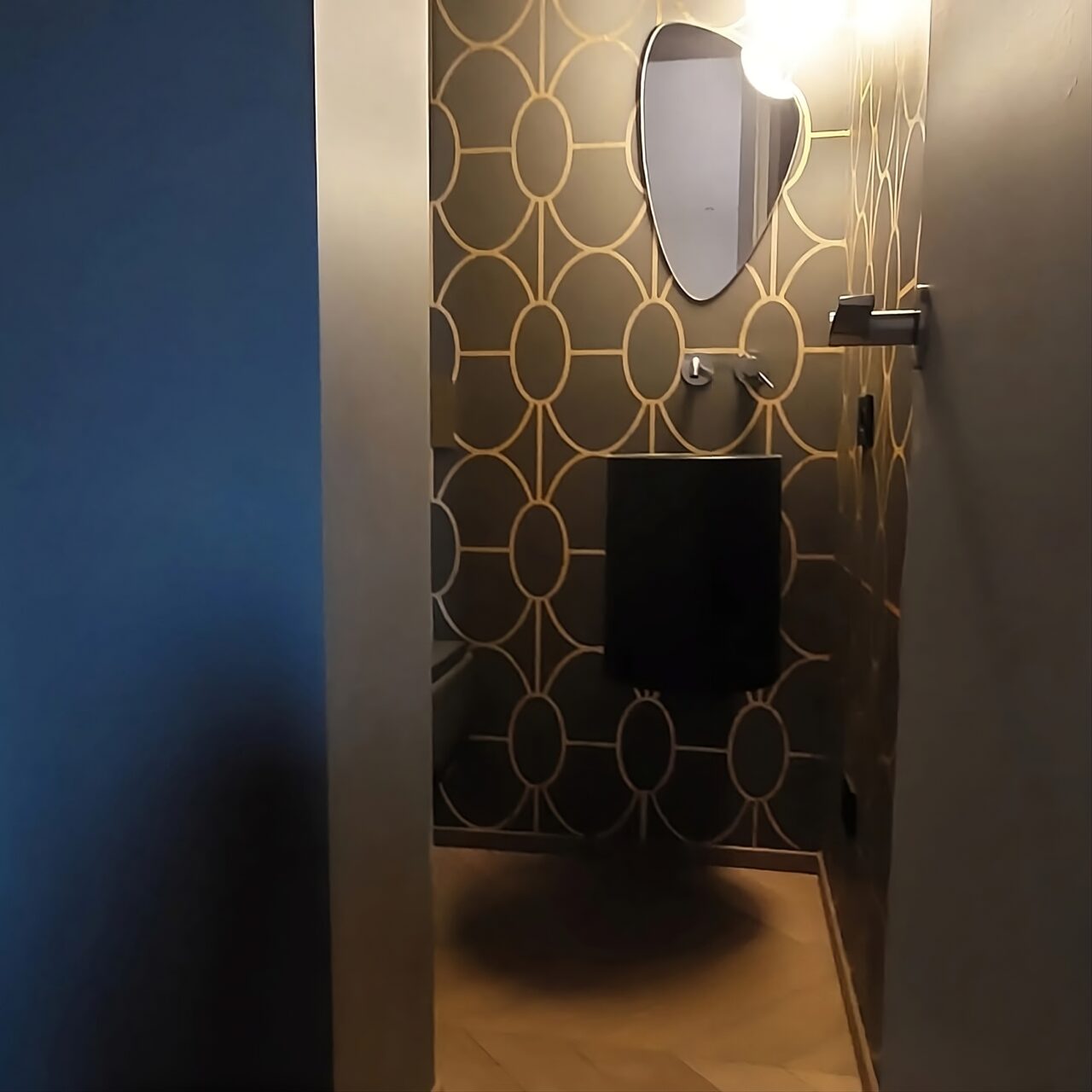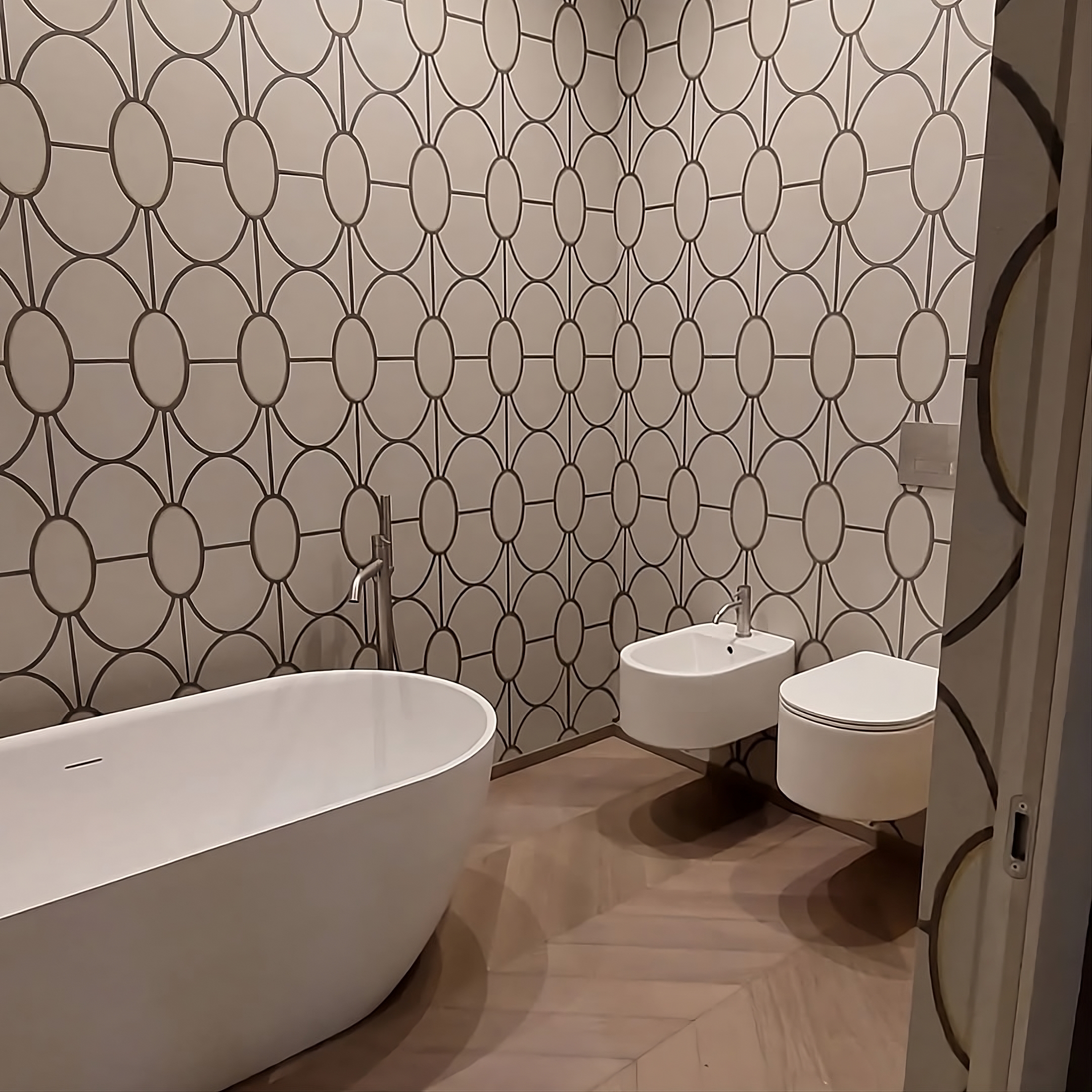 Rivestimento in resina Kerakoll spatolata e decorata a rilievo con motivo ripetuto effetto parato, featuring Kicol, per Abitazione Privata, Milano