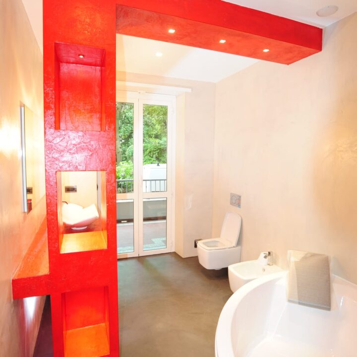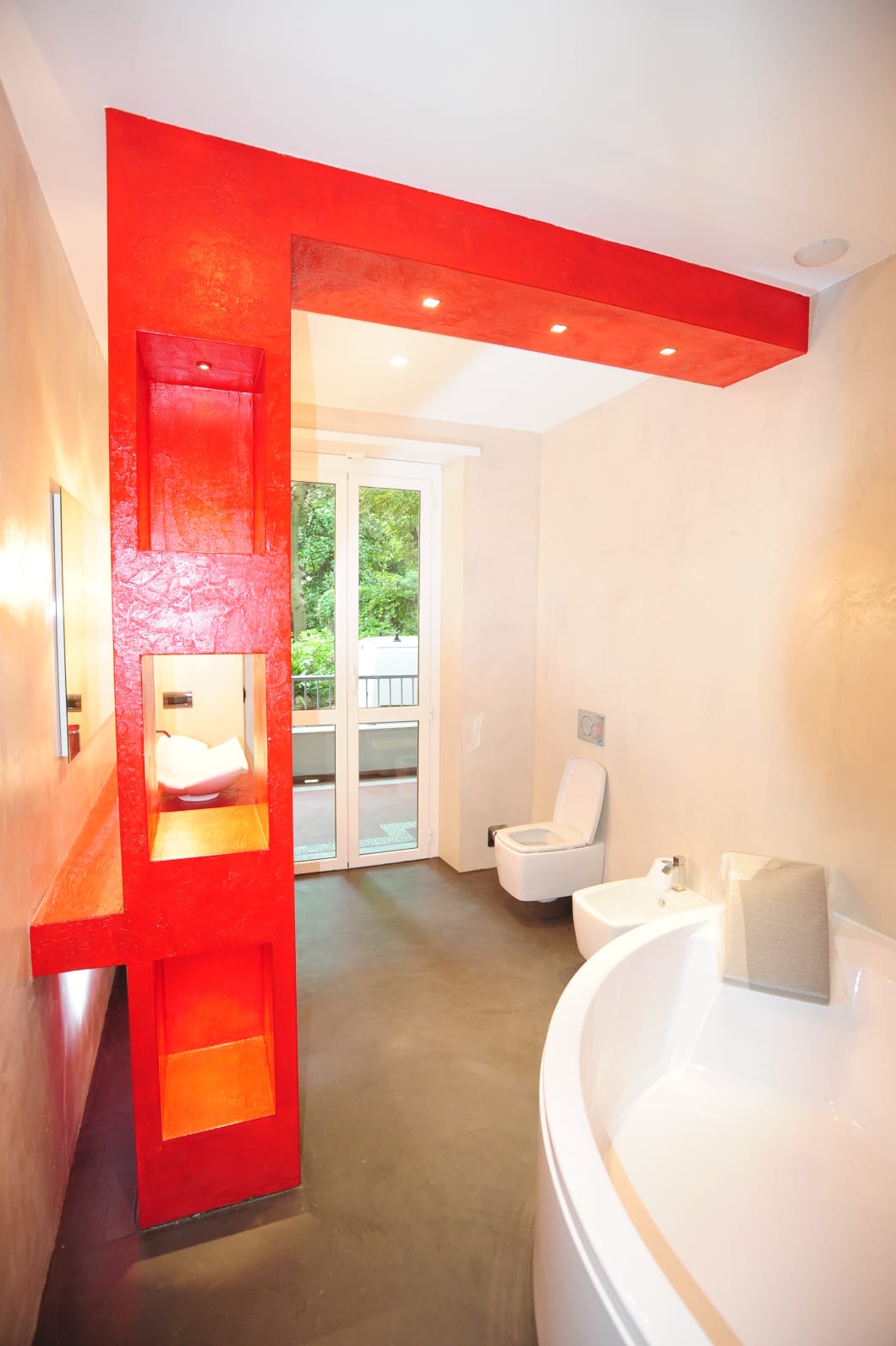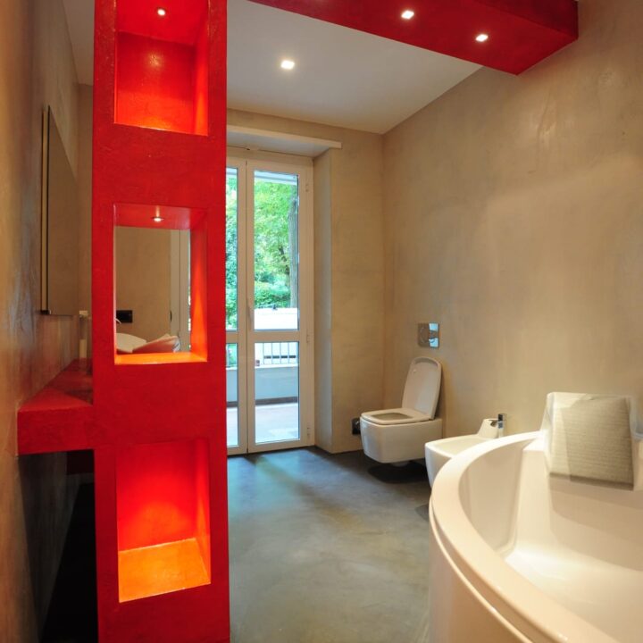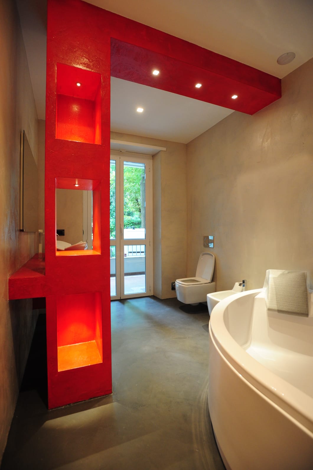 Rivestimenti a parete e pavimento in Resina Gobbetto spatolata, per abitazione Privata, Torino